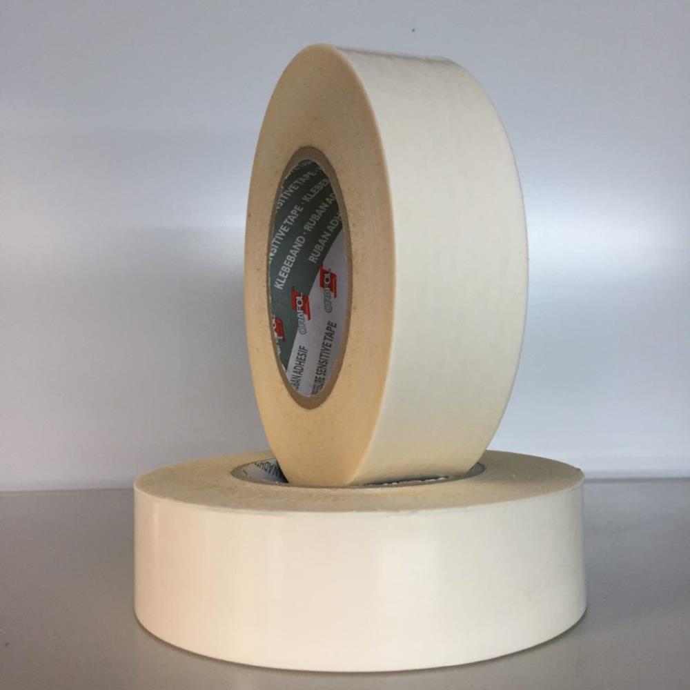 Das doppelseitige Klebeband besteht aus einem Gewebe-Träger, der beidseitig mit modifizierten Dispersions- AcrylatHaftklebstoffen beschichtet ist.