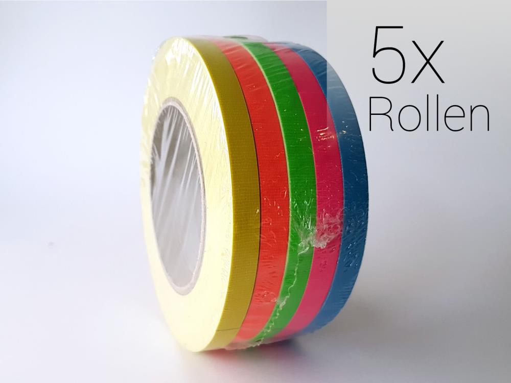 Produktinformationen "Gewebeband Neon Klebeband fluoreszierendes Neon Gaffa Tape Set, 5x Rollen 10mm x 25m"