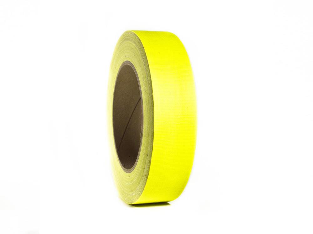 Premium Gewebeband mit PE-Beschichtung und matter Oberfläche zur Minimierung von Lichtreflexionen. Es bietet hohe Klebekraft und Reißfestigkeit, ist flexibel und wasserfest. Das Band lässt sich sauber von Hand reißen, ist leicht abrollbar und widersteht Öl und Chemikalien. Erhältlich in Neonfarben, die unter UV-Licht fluoreszieren.