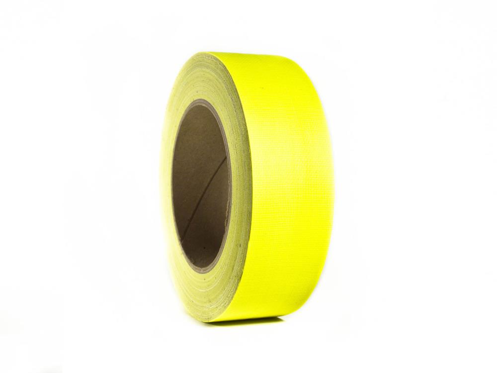 Premium Gewebeband mit PE-Beschichtung und matter Oberfläche zur Minimierung von Lichtreflexionen. Es bietet hohe Klebekraft und Reißfestigkeit, ist flexibel und wasserfest. Das Band lässt sich sauber von Hand reißen, ist leicht abrollbar und widersteht Öl und Chemikalien. Erhältlich in Neonfarben, die unter UV-Licht fluoreszieren.